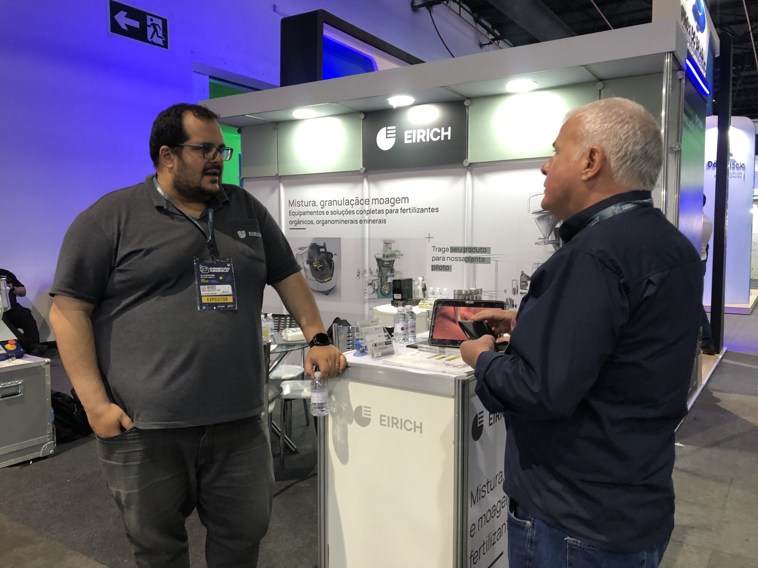Um dos destaques do estande da Eirich foi a presença de Pietro Sommariva, especialista em Moagem Fina da Eirich Impianti (Itália), que apresentou o Turbo Grinder, tecnologia voltada à otimização de processos de moagem e ao aumento de eficiência na produção de fertilizantes.